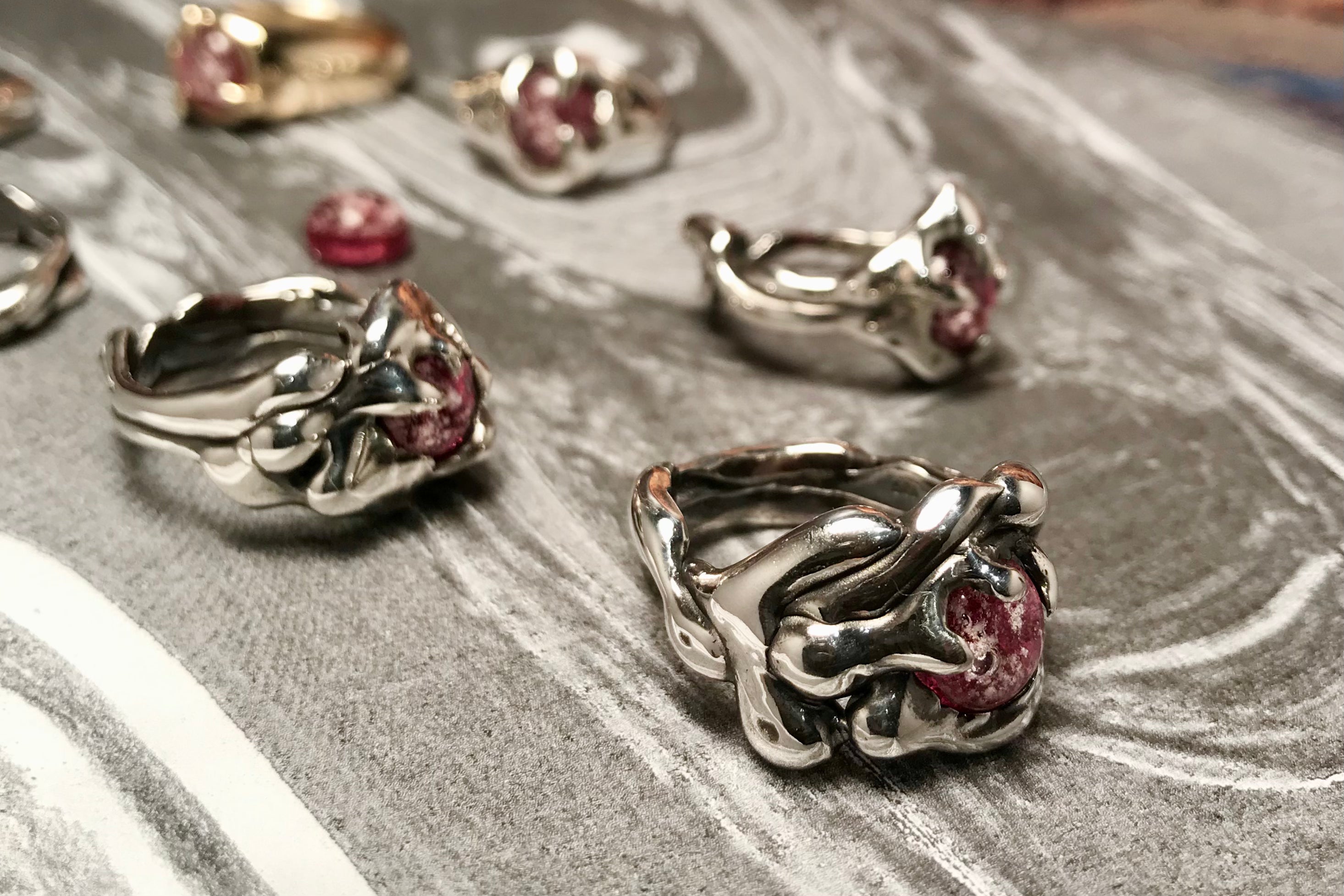 Working from her Collingwood studio, Grace offers custom consultations and wax-carving workshops by appointment. She also attends local and international gem shows alongside her Opal-mining Father, Rod Griffin, embracing a well-travelled path across Australia, Europe and the USA.